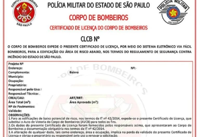 CLCB - Certificado de Licenciamento do Corpo de Bombeiros
